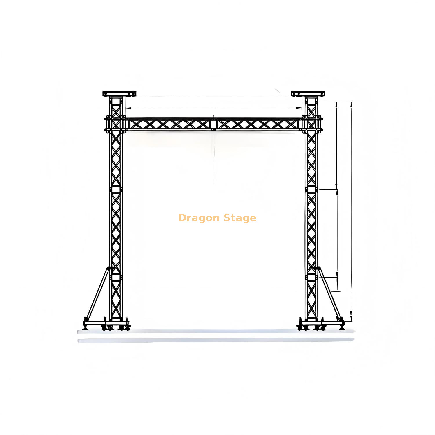 Ancho óptimo para pantallas: El ancho de 6 metros se adapta cómodamente a paneles LED estándar de gran escala, proporcionando un marco estable para montar equipos de video pesados.