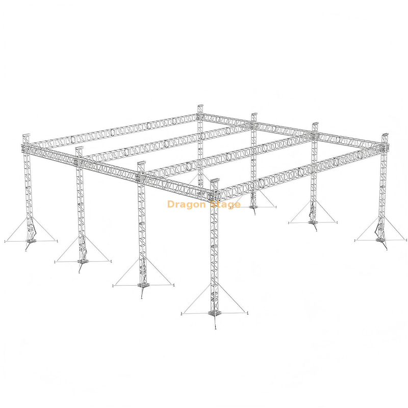 Diseñado para construcciones de escenarios a gran escala, conciertos al aire libre y eventos industriales, el armazón de escenario de aluminio con pilar de viga de armadura de alta resistencia de aluminio indio (120 x 100 x 40 pies, 8 patas) combina una ingeniería robusta con flexibilidad modular. Fabricado con aleaciones de aluminio de primera calidad aeroespacial, este sistema de truss ofrece una capacidad de carga, estabilidad y adaptabilidad excepcionales para necesidades de puesta en escena complejas.