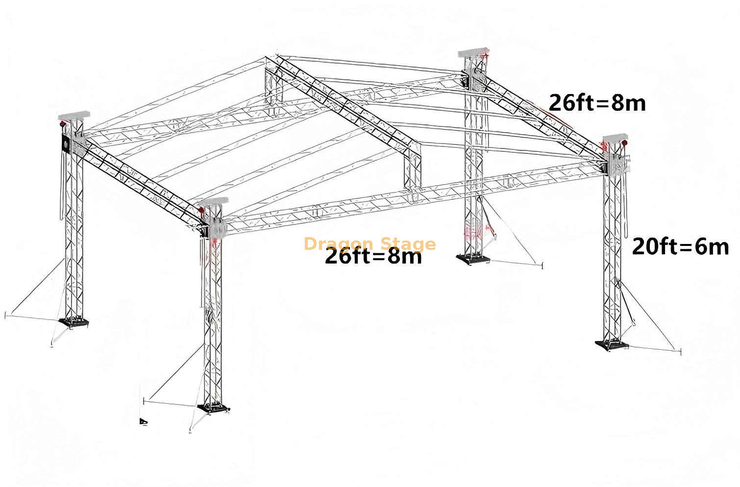 Iluminación e integración de sonido: la armadura proporciona una plataforma conveniente para montar accesorios de iluminación y equipos de sonido. La planificación y la integración cuidadosa son esenciales para lograr la iluminación óptima y los efectos de sonido.