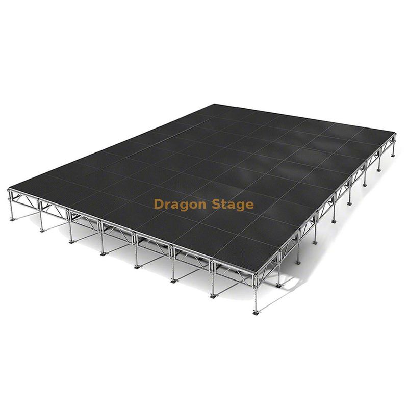 Una de las mayores ventajas de la plataforma de escenario portátil para eventos de conciertos de bodas al aire libre es su facilidad de instalación y desmontaje. Diseñado teniendo en cuenta la portabilidad, este escenario se puede montar y desmontar rápidamente, lo que le ahorra tiempo y esfuerzo. Esto significa que puedes transportarlo fácilmente a diferentes lugares y configurarlo con un mínimo de molestias, lo que lo hace perfecto para eventos que requieren un poco de flexibilidad en términos de lugar.