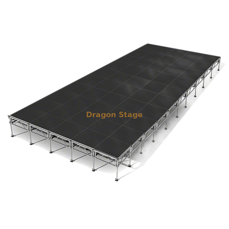 Alta capacidad de carga: Con una capacidad de carga de hasta 800 kg/m², este escenario puede soportar equipos pesados y múltiples artistas.