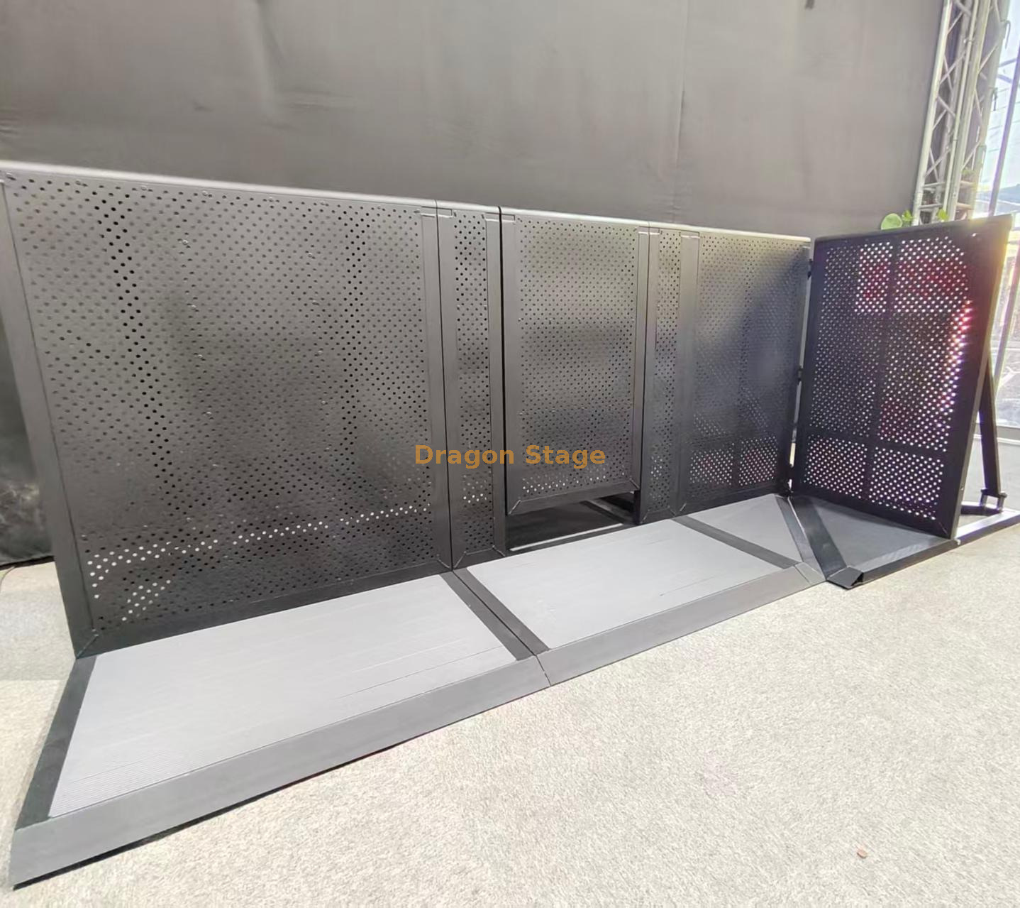Desde una perspectiva de seguridad, las barreras del escenario deben resistir la presión de la multitud y las fuerzas de impacto. Este producto se fabrica de acuerdo con las consideraciones de los estándares de seguridad y las limitaciones de ingeniería y está respaldado por un control de calidad de los materiales, como materiales de aluminio certificados..