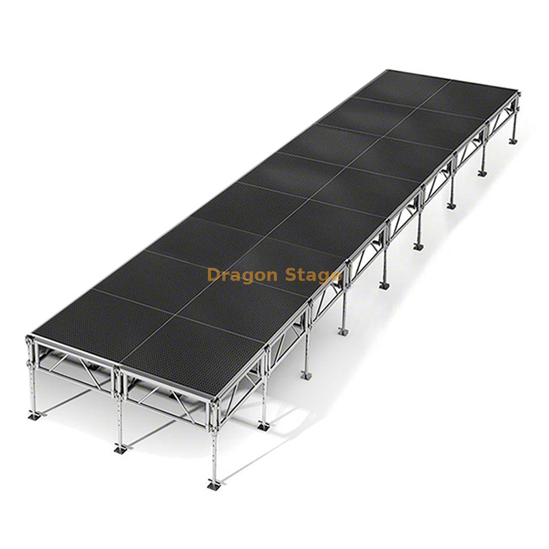 Diseño modular: esta configuración de 32' x 8' se compone de plataformas individuales fáciles de conectar, lo que permite un montaje rápido por tan solo dos personas sin necesidad de herramientas especializadas.